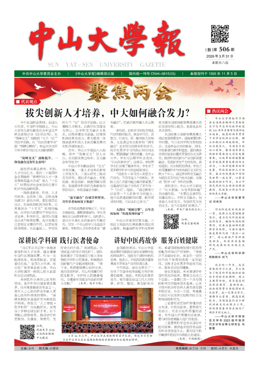 中山大学将把学习领会全国两会精神与贯彻落实习近平总书记致学校建校100周年重要贺信精神结合起来,把党的领导贯穿于办学治校的全过程,树立和践行正确政绩观,牢记为党育人、为国育才的初心使命,聚焦国家重大战略和粤港澳大湾区发展需要,以改革创新凝聚...