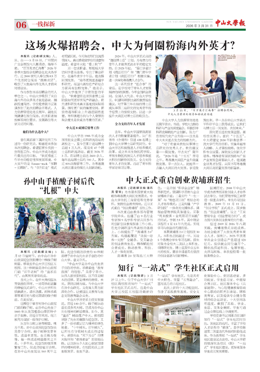 本报讯(记者/张妍)3月27日上午,位于中山大学广州校区南校园的知行“一站式”学生社区正式启用。这是中山大学三校区五校园的最新的“一站式”学生社区,也是具有中大特色、突显“五育融合”、富有活力的示范社区。此次上新的十大功能空间,包含了思政教...