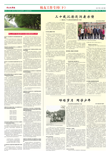 岁月蹉跎,年华似水。时光无法倒流,青春亦不可重来。但每逢想起那曾经的激情岁月,峥嵘年华,依旧让人心潮澎湃。毓秀的康乐园,承载了一代代中大学子的青春与梦想。恰逢毕业三十周年之际,历史系79级校友资讯管理学院陈永生教授、广东中国和平统一促进会秘...