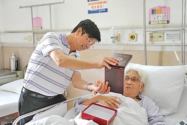 本报讯(肿瘤防治中心)在纪念中国人民抗日战争暨世界反法西斯战争胜利70周年之际,8月28日,肿瘤防治中心党委书记李建超及中心办公室、人事处等部门负责人一行来到我校附属第一医院口腔科,看望慰问在此住院的肿瘤防治中心老书记、曾参加抗日战争的离休干部蒲广寒(见图)。