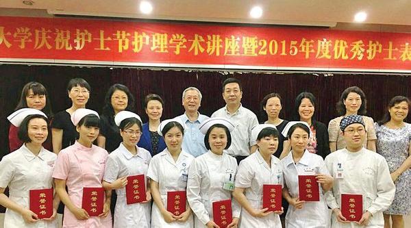 本报讯(医院管理处)为庆祝“5·12”国际护士节,弘扬南丁格尔救死扶伤、勇于奉献的人道主义精神,5月6日,学校在北校区举办了2016年中山大学庆祝护士节护理学术讲座暨2015年度优秀护士表彰活动。本届中山大学优秀护士共评选出95名,余敏斌副校长和中华护理学会副理事长、附属第一医院护理部成守珍主任为优秀护士颁发了荣誉证书。