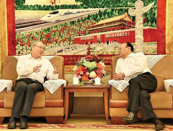 本报讯(党委宣传部 摄影/郝俊)7月26日下午,新疆维吾尔自治区党委书记、兵团党委第一书记、第一政委陈全国,自治区党委副书记、自治区主席雪克来提·扎克尔会见中山大学校长罗俊一行。自治区党委副书记、教育工委书记李鹏新,党委常委、组织部部长纪峥,党委常委、代理秘书长沙尔合提·阿汗,党委组织部副部长曹远峰等陪同会见。