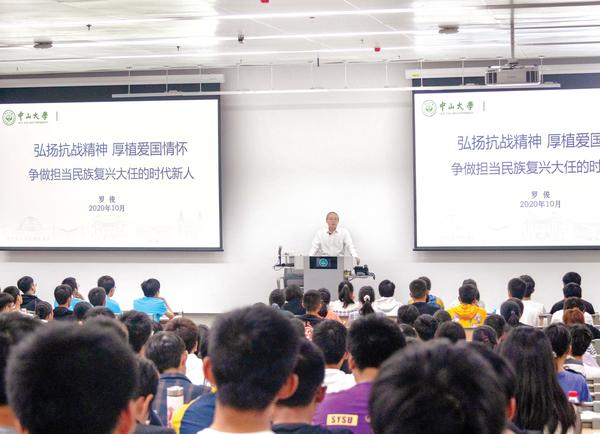 本报讯(记者/何方 吴立坚)10月8日晚7时,深圳校区西教学楼,座无虚席的101课室,来自航天航空学院和生物医学工程学院的300多位2020级本科学生用热烈的掌声迎来了他们翘首以盼的“思政第一课”:由中国科学院院士罗俊校长为他们讲授主题为“弘扬抗战精神,厚植爱国情怀,争做担当民族复兴大任的时代新人”的思政课。