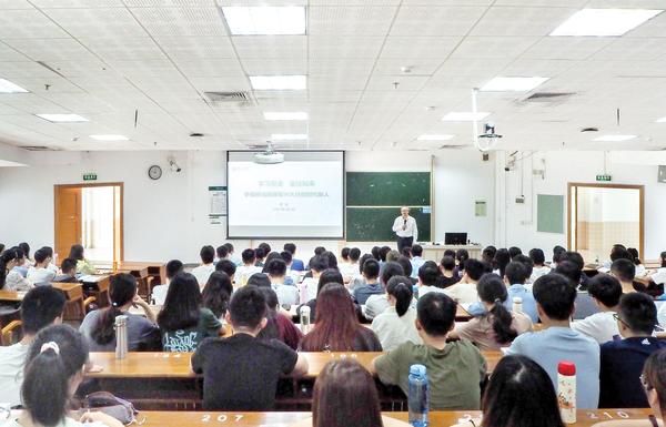 本报讯(记者/王冬梅 摄影/黄舜珺)5月7日,罗俊校长在广州校区北校园新教学楼为中山大学医学院2019级临床医学专业160多位本科生讲授“思想政治理论第一课”。结合党史学习教育的要求,罗俊校长以“学习党史 鉴往知来 争做担当民族复兴大任的时代新人”为主题进行讲授。马克思主义学院陈淑琼老师主持课程。