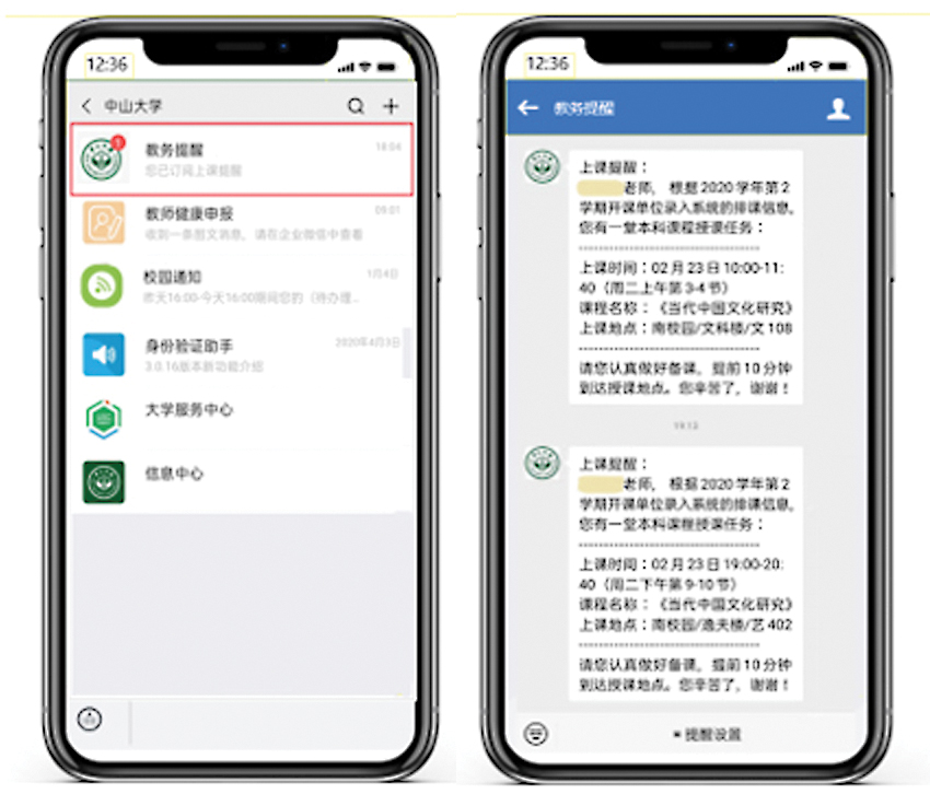实现手机移动端课程提醒,助力日常教学工作