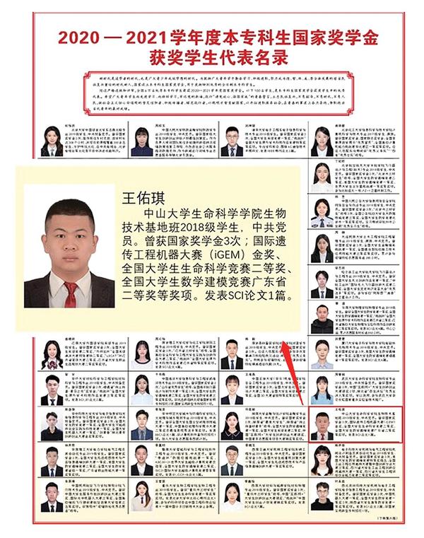 本报讯(通讯员/林仪)2022年5月4日,人民日报发布《2020—2021学年度本专科生国家奖学金获奖学生代表名录》(以下简称《名录》),我校王佑琪同学名列其中。