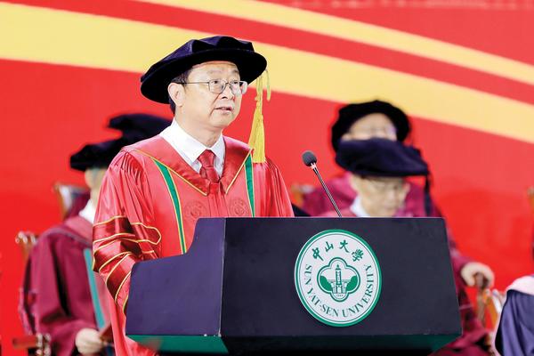 白云山高、珠江水长。在这里,你们修身励学、构筑梦想、追求卓越。在这里,你们勇于担当、甘于奉献、绘就青春。陈平原老师几天前在《中华读书报》发表文章,题目是“我在中山大学康乐园完成了精神蜕变”,他夫人说,他进北大气很壮,一点都不自卑。那种底气,是在康乐园养成的。你们在校读书期间,经历了抗击新冠肺炎疫情的艰难、亲历了国家从脱贫攻坚到乡村振兴,正在迈向全面建成社会主义现代化强国的新征程。你们共同参与并见证了学校事业的蓬勃发展。这几年,学校立足粤港澳大湾区,面向世界,形成了三校区五校园的办学格局和文理医工农艺综合发展的学科布局。“中山大学”号海洋综合科考实习船扬帆远航,“天河二号”超算领先世界,高端智库为国献言献策,“无敌中山医”守护人民健康。学校着力构建“五个融合”的卓越人才培养体系,不断改善师生的学习工作和生活环境。