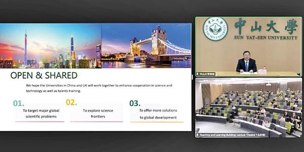 高松校长指出,中山大学地处粤港澳大湾区的改革开放发展前沿,坚持开放式办学,注重加强国际合作。近年来,学校坚持以国家需求为导向,面向世界科技前沿、面向经济社会需要和人民生命健康,大力建设高水平重大科技基础设施和创新平台,推动面向全球开放共享。学校致力于构建“学校—学部—院系”三级学术治理体系;探索校内与校外多种形式的教师聘用模式;坚持以学生成长为中心,帮助学生培养强大的学习力、思想力、行动力;并通过数字化,提升教育发展质量。高松校长表示,希望中英两国高校一起通过重大创新平台、学科交叉融合和教育数字化提升科技合作水平和人才培养水平,打造开放共享的合作平台,面向全球重大科学问题,共同探索科学前沿问题,为全球发展贡献更多解决方案,造福人类社会。