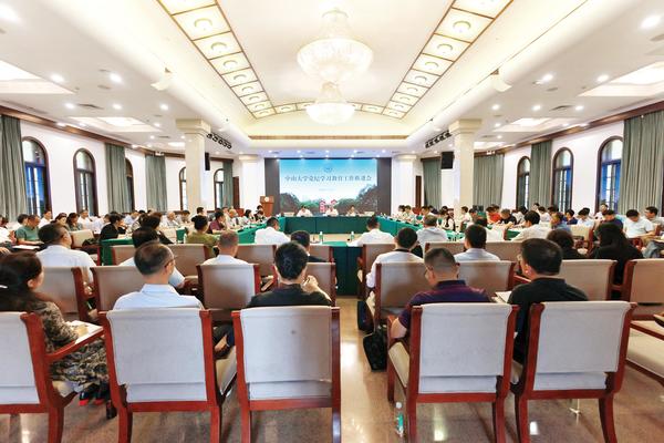本报讯(记者/张妍 摄影/丁琪)5月6日,我校党纪学习教育工作推进会在广州校区南校园怀士堂召开。校党委书记陈春声,党纪学习教育工作专班组长、校党委副书记国亚萍,党纪学习教育工作专班组长、校党委副书记、纪委书记、国家监委驻中山大学监察专员刁振强出席会议。会议由陈春声主持。