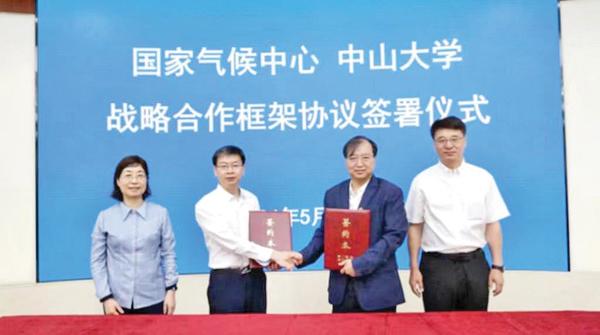 本报讯(通讯员/林柏富)5月8日,中山大学与国家气候中心在中国气象局气象科技大楼签订合作协议,共同探讨在大气科学领域开展科技创新、队伍建设和资源共享等方面合作事宜。国家气候中心主任、党委书记巢清尘,党委常委、副主任贾小龙,中山大学副校长邰忠智,科学研究院院长程晓及大气科学学院领导班子成员、教师代表等出席签约仪式。