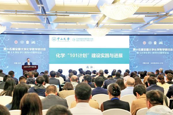 本报讯(通讯员/韦卓勋)4月26日,第十五届全国大学化学教学研讨会暨《大学化学》创刊40 周年论坛在北京大学中关新园召开。会议由高等学校化学教育研究中心和中国化学会化学教育学科委员会联合主办,北京大学化学与分子工程学院承办。化学“101计划”牵头专家高松院士受邀作大会报告,系统性介绍了化学“101计划”的建设实践与进展。