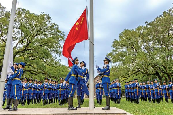 现场奏响国歌与校歌,五星红旗与中山大学校旗依次冉冉升起,迎风飘扬。全场师生庄严肃立,行注目礼。