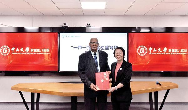 Faiz Elgaali对中山大学附属第八医院的诊疗水平与科研实力表示赞赏,希望以此次访问为起点,逐步建立起中东地区高校、医疗科研机构与中大八院的常态化交流机制,推动双方在联合研究、人员互访、技术转化等方面深度协作。陈燕铭表示,附属第八医院将积极融入“一带一路”倡议,依托医院与河套实验室的区位优势,促进与中东地区在医疗资源共享、临床研究、人才培养等方面的务实合作。