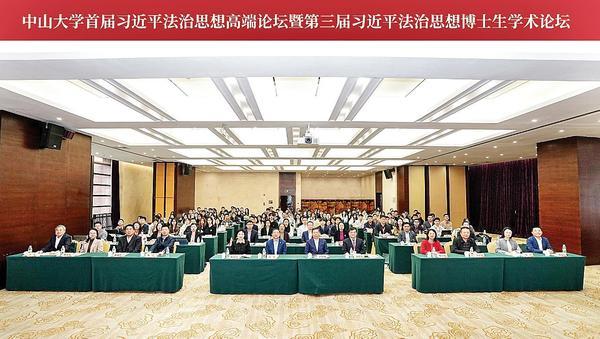 本报讯(通讯员/侯雪莹)2025年12月13日至14日,中山大学首届习近平法治思想高端论坛暨第三届习近平法治思想博士生学术论坛在中山大学广州校区南校园举办。中山大学校长高松作开幕致辞。最高人民检察院咨询委员会副主任、教育部法学学科教学指导委员会主任委员、中国法理学研究会名誉会长徐显明教授、吉林大学法学院院长何志鹏教授、共青团广东省委员会学校部罗珂部长及来自多所高校的博士研究生和博士后、校内相关部门领导、专家学者等160余人参与了本次学术论坛。