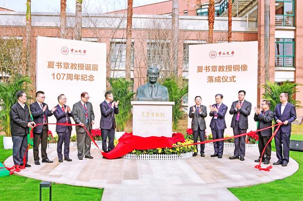 当天上午,夏书章教授铜像落成仪式在中山大学广州校区东校园举行。中国行政管理学会会长李宝荣,中国科学院院士、中山大学校长高松,北京大学教授王浦劬、清华大学教授薛澜、浙江大学教授郁建兴、中国人民大学教授严金明、清华大学教授任剑涛、中山大学教授肖滨、夏书章教授长子夏纪真、捐赠校友代表何文锋等共同为铜像揭幕。