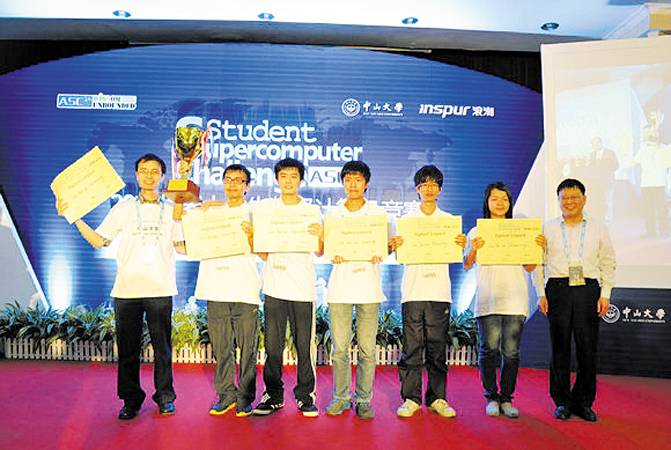 本报讯(新闻中心 浪潮公司) 4月25日,全球规模最大的世界大学生超级计算机竞赛ASC14总决赛在我校落下帷幕。我校参赛队在国际通行的Linpack基准测试中,在3000W功耗限制下,以每秒9.272万亿次的运算速度创造新的世界纪录,勇夺最高计算性能奖;同时获得本届竞赛一等奖。竞赛的冠亚军分别由上海交通大学和新加坡南洋理工大学获得。