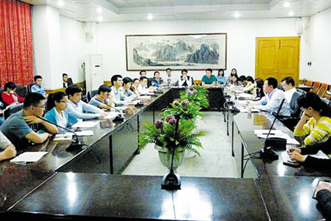 与会人员集中学习了习近平总书记五四重要讲话精神。今年5月4日,习近平总书记到访北京大学并与北大师生座谈。习总书记深刻阐述了社会主义核心价值观的意义和内涵,号召广大青年要深入学习和自觉践行社会主义核心价值观,对青年的成长成才提出了具体要求,鼓励青年要有信念、有梦想、有奋斗、有奉献。